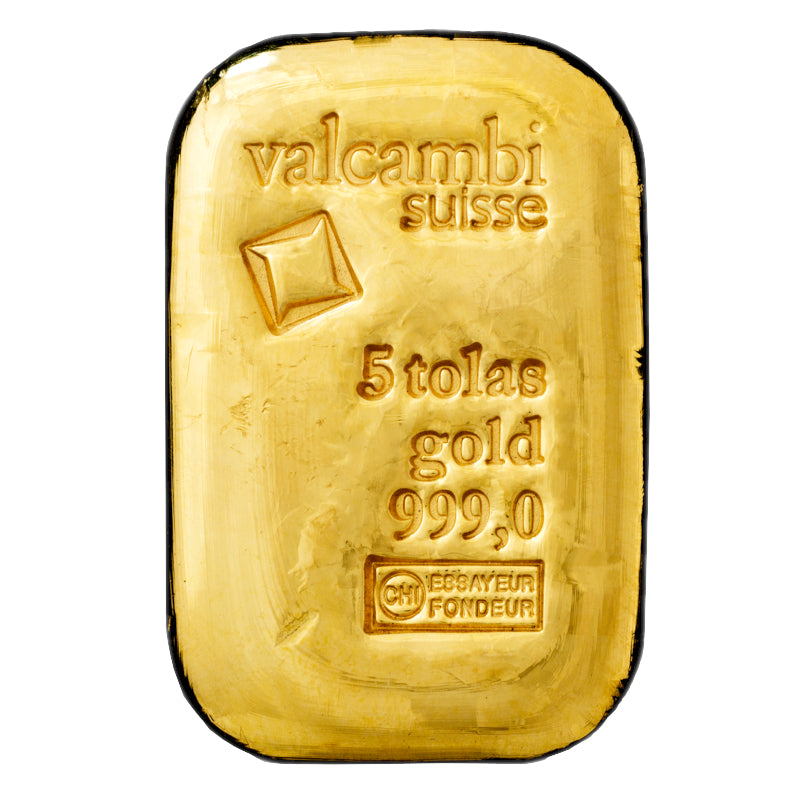 Valcambi Suisse 5 tola 999 Cast Gold Bar