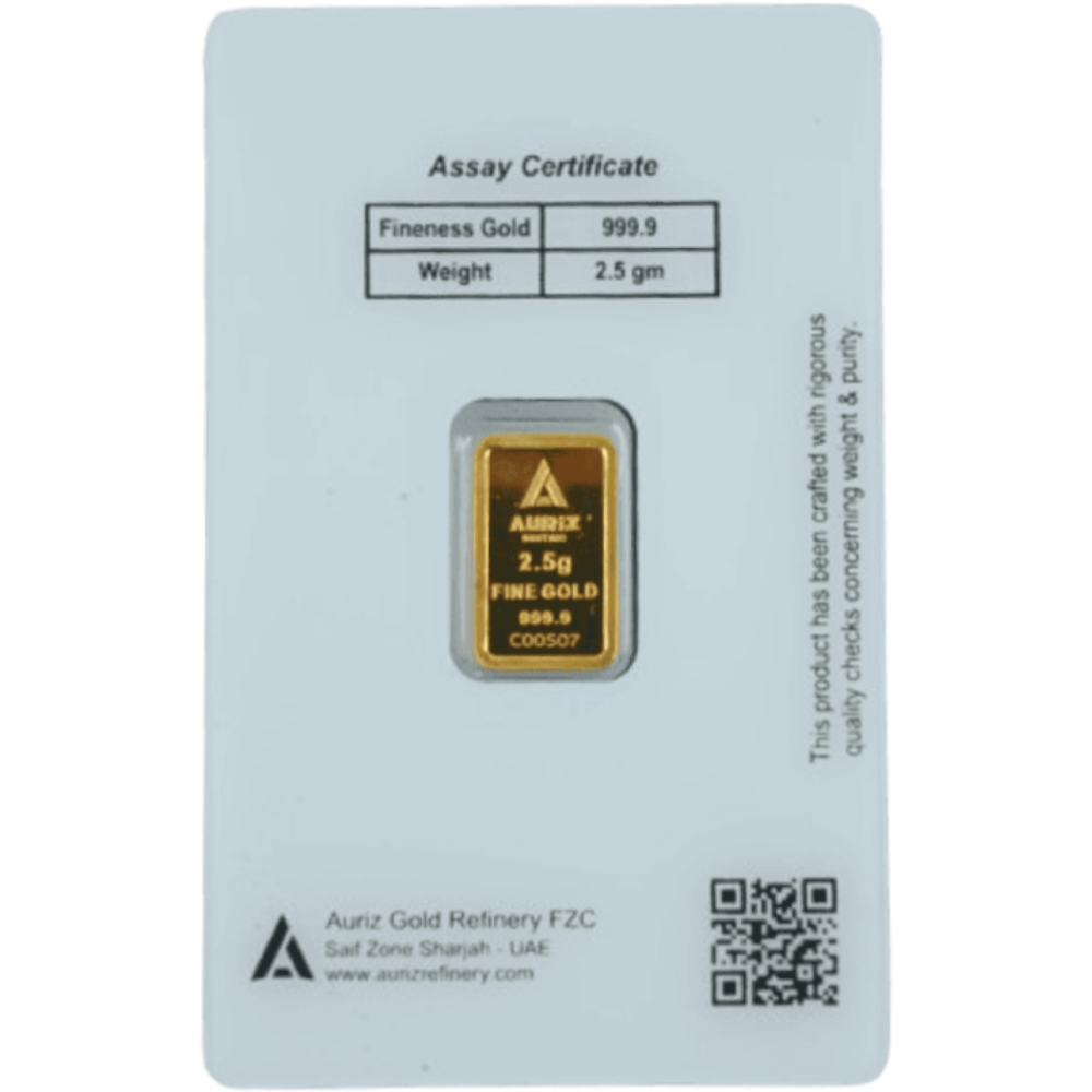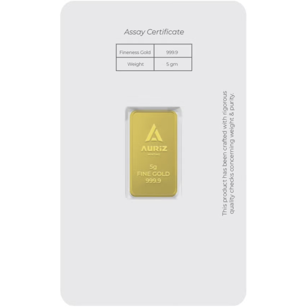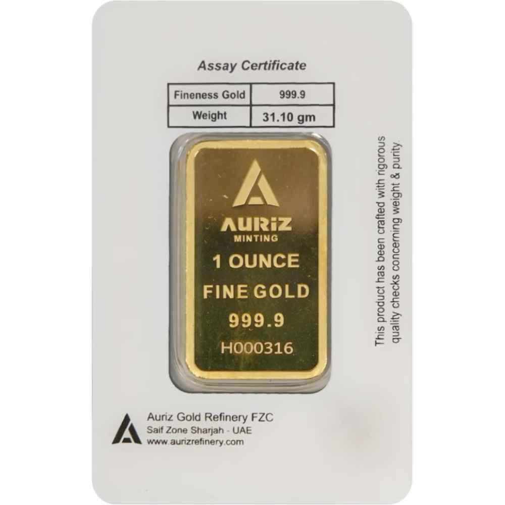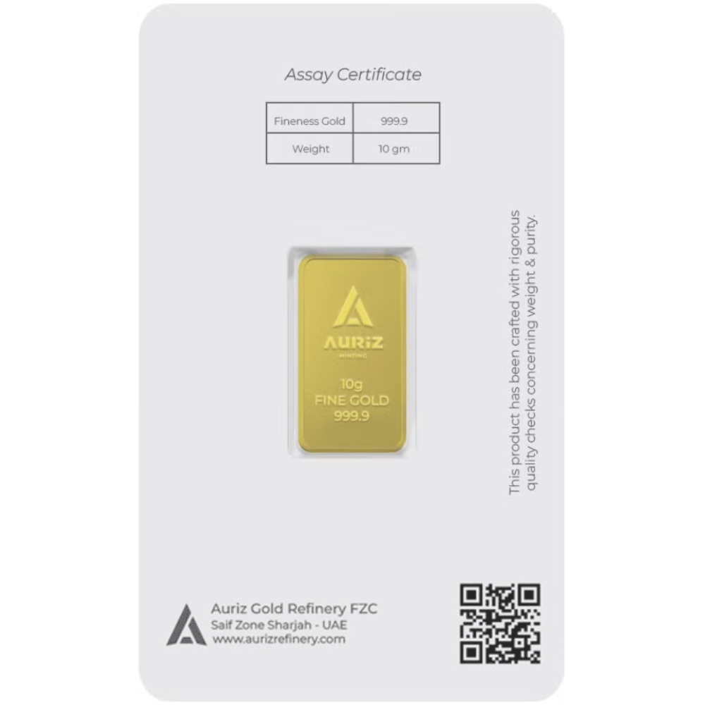 Auriz is a modern bullion brand offering well-finished, investment-grade gold bars with reliable purity. Known for clear stamping and accuracy, Auriz bars are a trusted choice for everyday investors.
