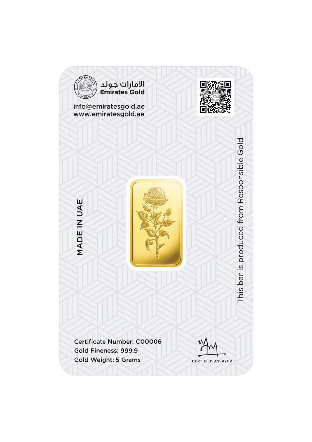 This gold bar from Emirates Gold is produced by one of the UAE’s most established refineries. With 999.9 purity and consistent craftsmanship, it is a trusted choice for investors seeking locally refined bullion.