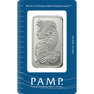 This fine silver bar from PAMP Suisse features the iconic Lady Fortuna design, symbolizing prosperity and timeless craftsmanship. Produced to exceptional Swiss refining standards and guaranteed at 999 purity, this bar is one of the most trusted and globally recognized choices for silver investors.